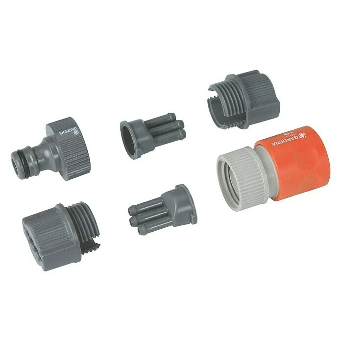 De Gardena aansluitset bevat alle systeemonderdelen die nodig zijn voor aansluiting op de slangsproeier.