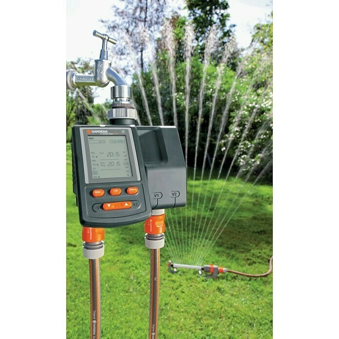 De GARDENA besproeiingscomputer MultiControl Duo heeft een automatische aan/uit-functie en een sensoraansluiting. Je kunt maximaal drie besproeiingsintervallen per dag instellen, die per interval tussen één minuut en 3 uur 59 minuten kunnen duren. Je kunt zelf het startmoment van het besproeien bepalen en de batterijstatus wordt op het display weergegeven. Bovendien is de computer uitgerust met een aansluiting voor een regen- of bodemvochtigheidssensor, zodat de planten optimaal worden besproeid.