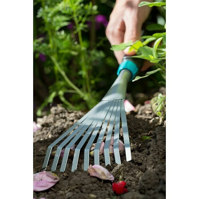 De GARDENA bladhark is ideaal om bladeren bij elkaar te vegen. De ergonomische handgreep met zacht component past perfect in de hand en de hoek aan het einde voorkomt wegglijden. De bladhark heeft een werkbreedte van 12 cm. Het blad is gemaakt van hoogwaardig staal en voorzien van een duroblast coating voor een lange levensduur. Gardena geeft een garantie van 25 jaar op dit product.