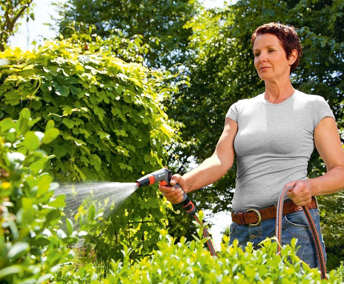 Het GARDENA Classic reinigingspistool met instelbare waterdoorvoer biedt alles wat u nodig heeft voor reinigings- en besproeiingswerkzaamheden in en rondom uw tuin. Met innovatieve, geïntegreerde technologie ter bescherming tegen vorst. Met instelbare waterdoorvoer heeft u altijd de juiste hoeveelheid water voor de toepassing. Zachte kunststofring beschermt tegen beschadiging. De harde straal is geschikt voor reinigingswerkzaamheden en de fijne nevelstraal is ideaal voor het besproeien van kwetsbare planten. Als het water achter elkaar moet blijven stromen, kunt u de hendel vastzetten. Een vermoeide hand wordt zo voorkomen.
