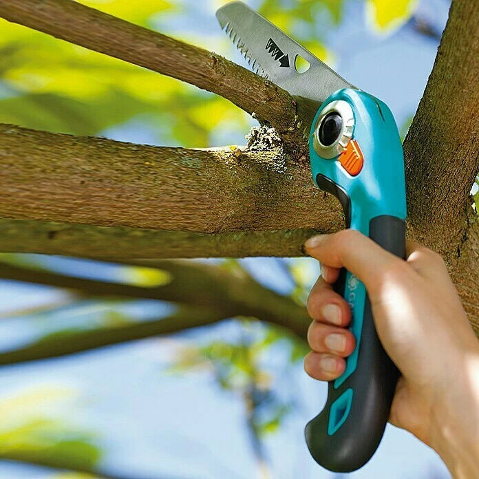 De GARDENA inklapbare snoeizaag 135 P is met een totale lengte van 135 mm de handzame allrounder voor het zagen van dikkere takken. Hij is ideaal voor allerlei kleine zaagklussen in de tuin en is ook geschikt voor outdoor activiteiten. Het hardverchroomde zaagblad heeft impulsgeharde, driezijdig precisiegeslepen tanden, waardoor je niet alleen snel, maar ook met weinig krachtsinspanning uitstekend en nauwkeurig kunt zagen. Met name het inkerven gaat veel gemakkelijker. Met de vergrendelknop kun je de zaag veilig en stevig in drie verschillende posities vergrendelen. Tijdens het zagen voorkomt een stop aan het uiteinde van de handgreep dat je hand wegglijdt.
