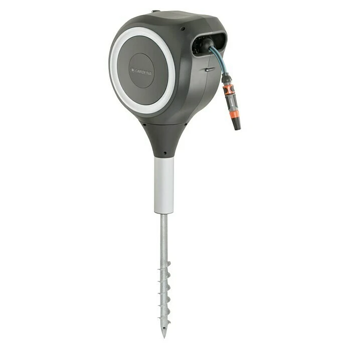 De Gardena Slangenbox RollUp S biedt niet alleen een veilige en ruimtebesparende opslag voor je tuinslang, maar je zult ook blij zijn met de moeiteloze bewatering van de tuin. De handige slangenbox wordt in de grond verankerd met een stevige standaard op een plek naar keuze in een bloembed of op het gazon. Met behulp van een bevestigingsstang kun je de metalen pen nog eenvoudiger in de grond schroeven. Voor gebruik trek je de slang uit tot de gewenste lengte en kun je meteen beginnen met bewateren. Dankzij de ingebouwde korte vergrendelingspunten is het hanteren van de tuinslang eenvoudiger dan ooit: zodra je stopt met trekken aan de slang, wordt de vergrendeling automatisch vastgezet op de gewenste slanglengte. Het innovatieve ontwerp kan 360 graden worden gedraaid, voor maximale flexibiliteit bij het bewateren van de tuin. De box volgt altijd je bewegingen, zodat elke hoek van de tuin gemakkelijk bereikt kan worden zonder dat de tuinslang knikt of in de knoop raakt. Bovendien bespaar je met deze slangenbox vermoeiend opwikkelen en oprollen en heb je geen last van vuile handen: door kort aan het uiteinde van de slang te trekken, wordt de vergrendeling ontgrendeld en wordt de tuinslang dankzij een geïntegreerde stalen veer volledig automatisch en betrouwbaar opgerold. De box heeft een praktische slanggeleider die de slang op zijn plaats houdt, zodat er geen blokkades of knopen optreden. De innovatieve RollControl-technologie zorgt voor veilig, gecontroleerd en moeiteloos oprollen zonder dat de slang in de war raakt. Het hoogwaardige materiaal is bestand tegen UV en vorst, heeft een lange levensduur en is onderhoudsvrij. De box is zeer compact en stijlvol ontworpen, zodat deze eenvoudig in elke tuin kan worden geïntegreerd. Hij is bovendien afgesteld op de hoogte van de GARDENA robotmaaiers, zodat het gazon rond de slangenbox altijd wordt onderhouden en gemaaid. De slangenbox wordt geleverd met een flexibele aansluitslang, alle benodigde montageonderdelen, de Original GARDENA System elementen en een sproeier met twee verschillende sproeipatronen. GARDENA geeft vijf jaar garantie op de slangenbox. Bewatering die altijd gebruiksklaar is.
