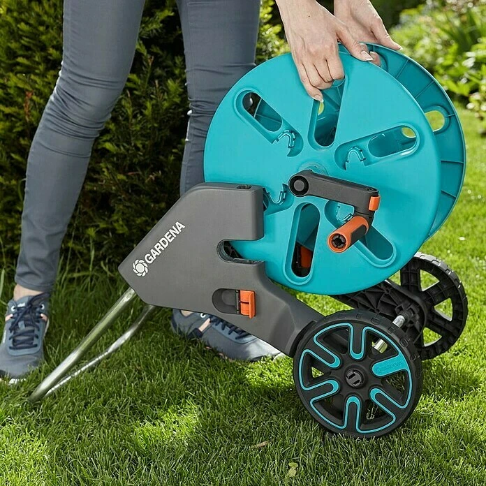 De GARDENA CleverRoll M zorgt voor ruimtebesparende opslag van de tuinslang en is handig in gebruik. De ergonomische slinger met zachte kunststof componenten zorgt voor het gemakkelijk oprollen van de slang. De slang is uitgerust met Original GARDENA System componenten en de tuinspuit hangt aan de praktische vasthoudclip op het bovenframe. Innovatieve vorstbestendigheid en 5 jaar garantie garanderen maximale kwaliteit “Made in Germany”.