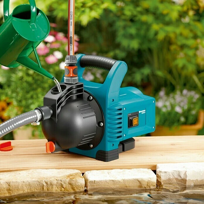 De Gardena Tuinpomp 3000/4 is het ideale instapmodel en veelzijdig inzetbaar. Door zijn hoge zuigkracht en drukvermogen is hij ideaal voor irrigatie, voor drukverhoging of voor het rondpompen van leidingwater, regenwater of gechloreerd zwembadwater. De pomp is licht en robuust en gemakkelijk in gebruik. Een grote vulopening maakt het gemakkelijker om de pomp te vullen voordat je hem opstart en dankzij een ergonomische handgreep is hij gemakkelijk te vervoeren. Rubberen voetjes garanderen een stevige stand en een geluidsarme, trillingsvrije werking. Om de tuinpomp te beschermen tegen vorst en dus beschadiging, is deze voorzien van een wateraftapplug om het resterende water in de pomp eenvoudig af te tappen. Keramische afdichtingen en een dubbel afdichtingssysteem tussen motor en pompaandrijving zorgen voor een veilige werking en beschermen tegen beschadiging. Een thermische beveiligingsschakelaar beschermt de motor tegen overbelasting.