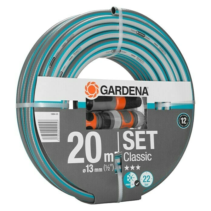 Deze verpakking bevat de GARDENA Classic slang en diverse GARDENA aansluitarmaturen. De drukbestendige slang, die zijn vorm behoudt door het gebruik van hoogwaardig textiel, is vrij van schadelijke weekmakers (ftalaten) en zware metalen, en is natuurlijk UV-bestendig. De complete set bestaat uit 6 producten.