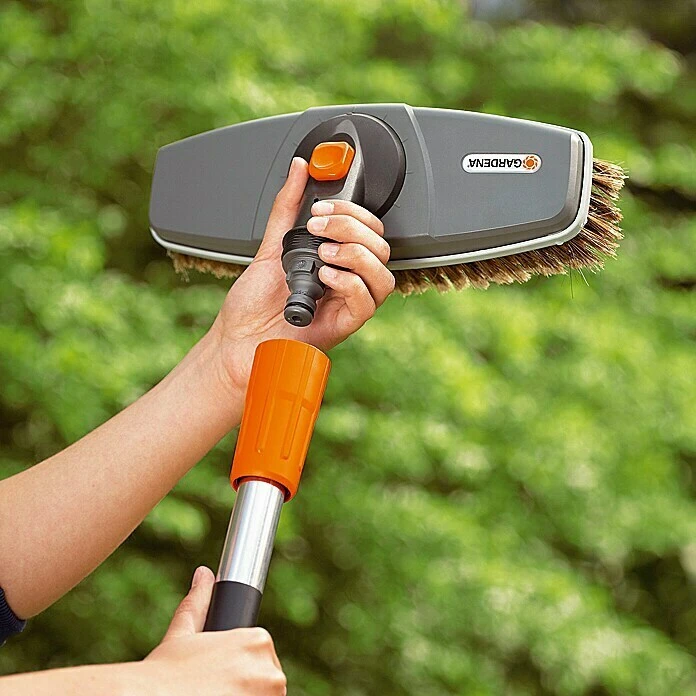 De GARDENA wasborstel met originele GARDENA systeemaansluiting is uitgerust met een hoogwaardige PET-borstel. Hij is ook geschikt voor het reinigen van gevoelige oppervlakken zoals auto’s. Omdat je de borstel in stappen van 30° kunt draaien, zijn allerhande oppervlakken moeiteloos te reinigen.
