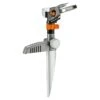 De Gardena zwenksproeier Aqua M is ideaal voor het gelijkmatig en nauwkeurig besproeien van rechthoekige en vierkante gazons van 110 tot 250 m². Deze sproeier heeft een traploos instelbare reikwijdte van 8 tot maximaal 18 meter en een sproeibreedte van maximaal 14 meter. Een inwendig metalen filter voorkomt het binnendringen van vuil. En voor het doorprikken van een verstopte sproeikop is het apparaat voorzien van een reinigingsnaald. De Gardena zwenksproeier Aqua M is vorst- en weerbestendig. Hij is snel te installeren, in te stellen en klaar voor gebruik.